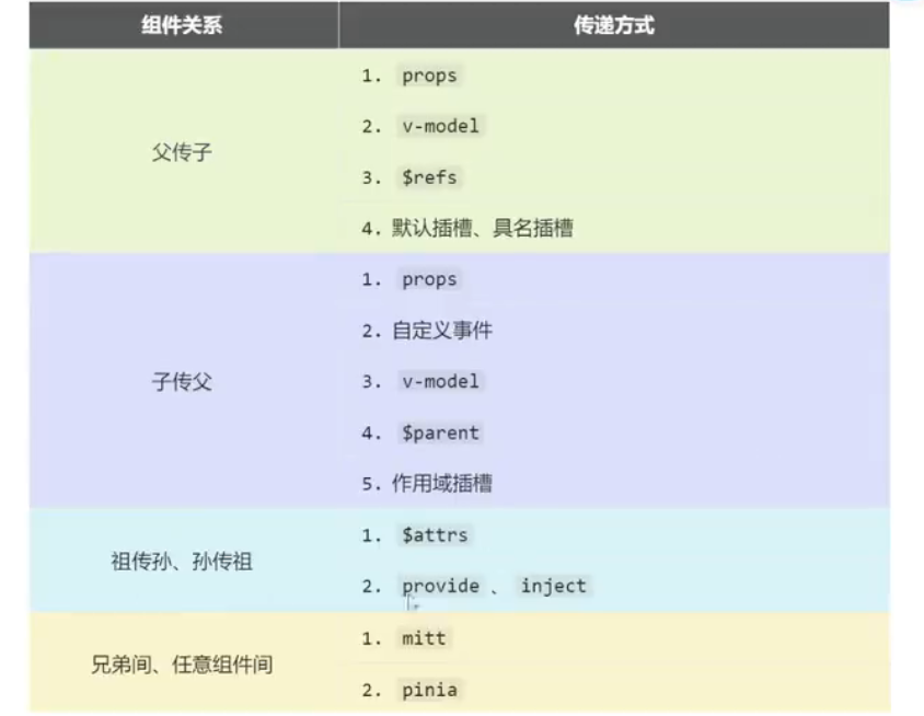 1 2 3 4 5 6 7 8 9 10 11 12 13 14 15 16 17 <template> //也可以直接v-model,下面等同于v-model <zpqInput v-model="username"></zpqInput> <zpq-input //数据流向页面但是没有双向绑定 :modelvalue="username" //监听update:modelvalue事件,如果子组件触发这个事件,就将该事件触发时传递过来的 $event值赋给username @update:modelvalue="username=$event"> </zpq-input> </template> <script setup lang="ts"> import {ref} from "vue" import zpqInput from "./zpq-input.vue"; let username = ref("12345") </script>>